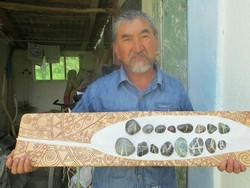 : Түптүк сүрөтчү К.Мусаев А.Атамбаевге 8 жылдан бери чогулткан табигый өзгөчөлүктөгү таштар менен белек даярдады