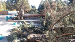 Шквальный ветер в Джети-Огузе повалил деревья, снес кровли школ и домов. Фото